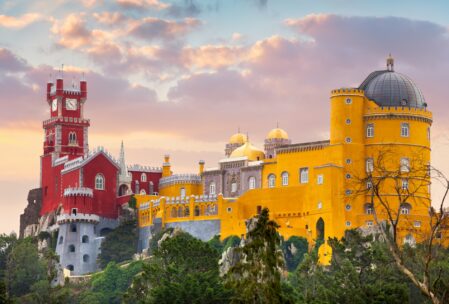 From Porto, make your way south to Sintra, a place that feels straight out of a storybook. Nestled among misty hills, Sintra is home to the vibrant and whimsical Palácio da Pena.